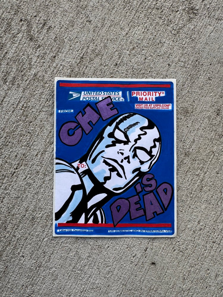 4.2x5.5” hand drawn sticker on USPS 228 label