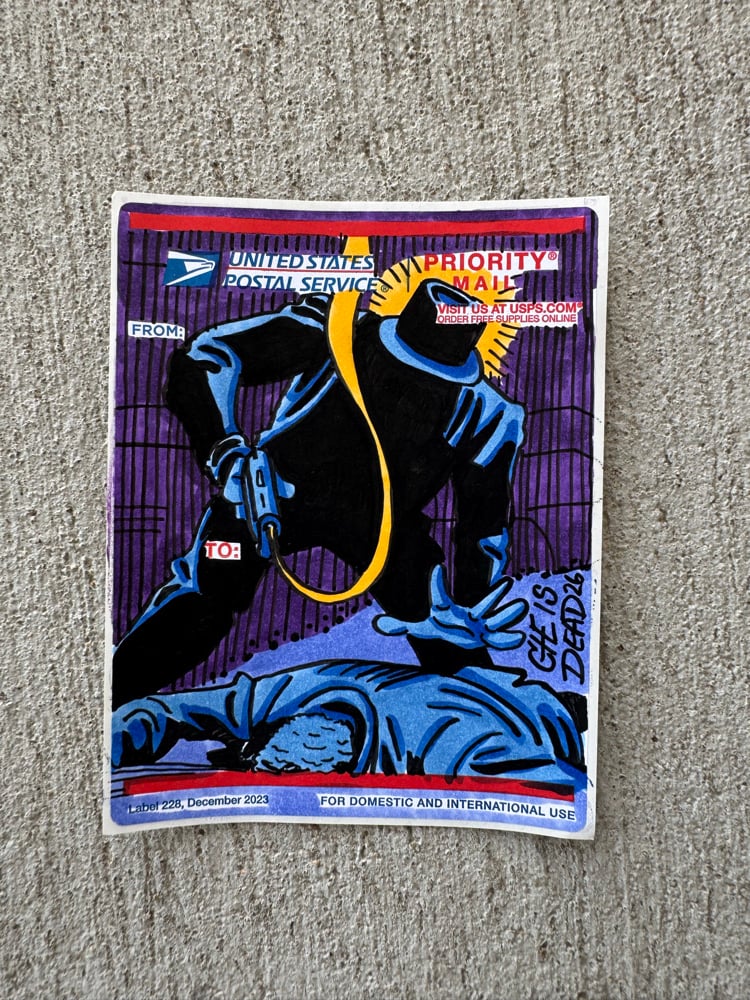 4.2x5.5” hand drawn sticker on usps 228 Label