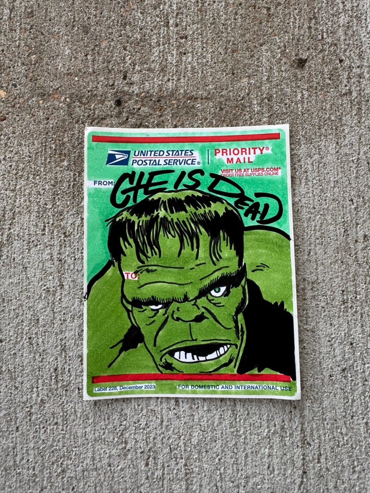 4.2x5.5” hand drawn sticker on usps 228 Label