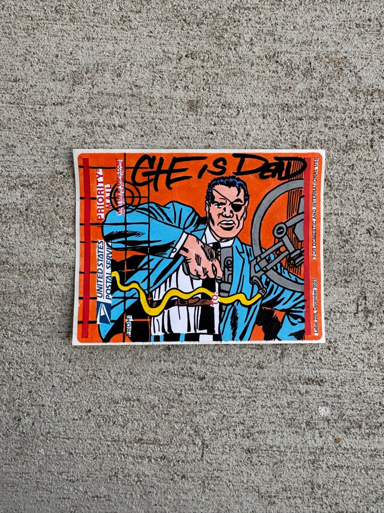4.2x5.5” hand drawn sticker on usps 228 Label